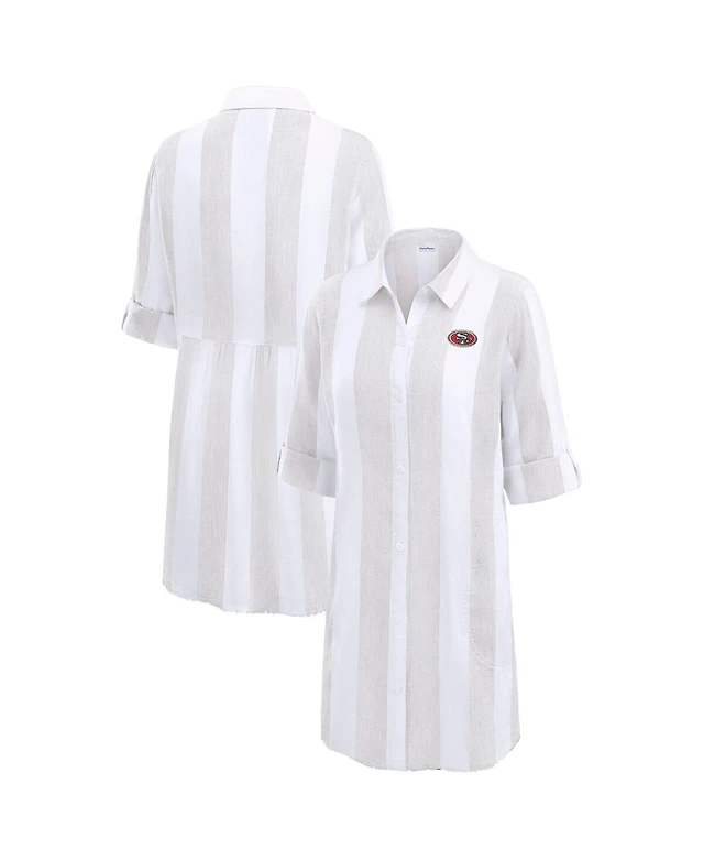 Tommy Bahama Women's Khaki/White San Francisco 49ers Rugby Beach Stripe Button-Up Tunic Top