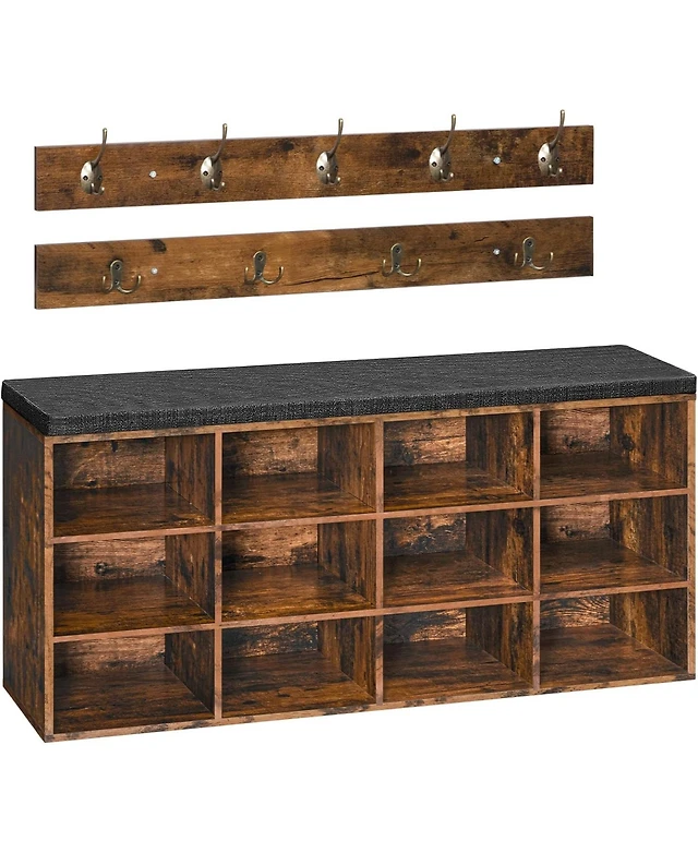 Shoe Storage Bench with Cushion, 39.4" L Entryway Bench with 12 Cubbies, Entryway Hall Tree with Storage, Shoe Cabinet with Coat Rack for Bedroom