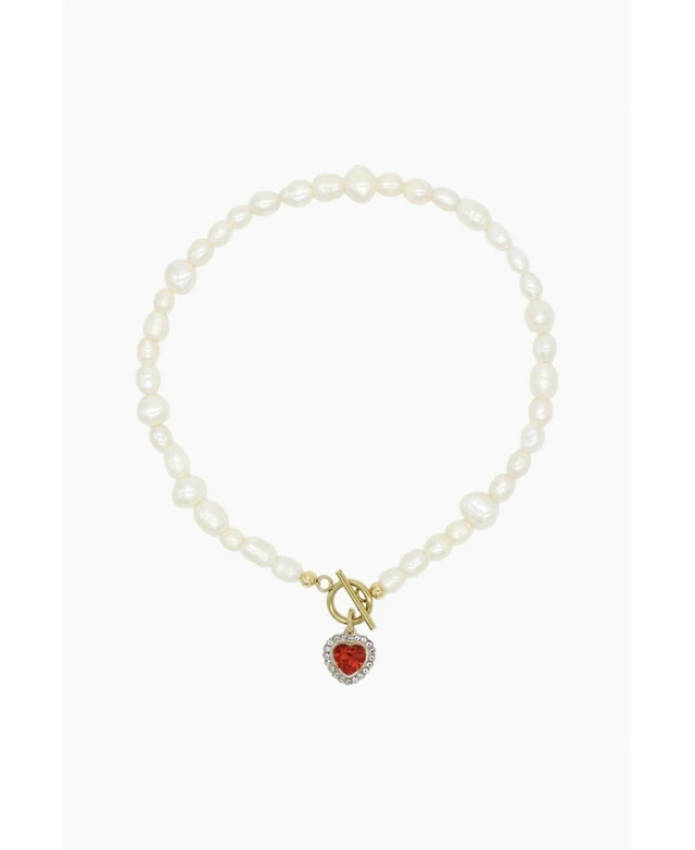 Freshwater Pearl Necklace With Red Heart Charm 15.0″