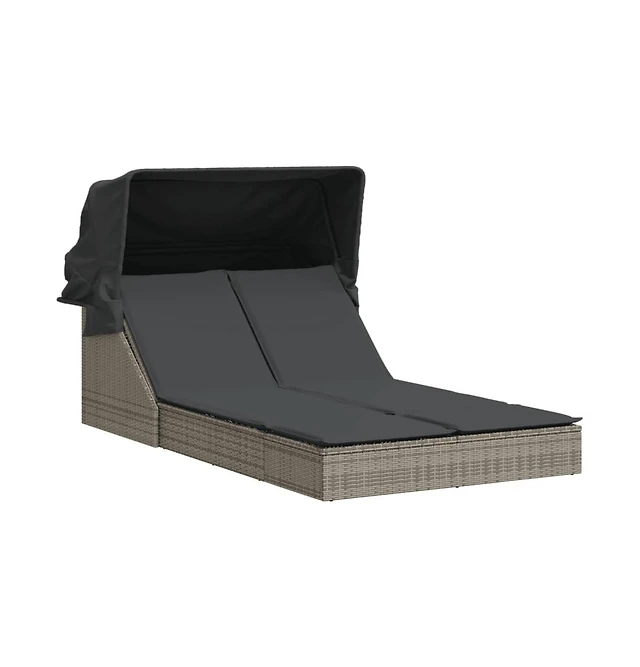 Patio Sun Lounger Light Gray Pe Rattan, Powder-Coated Steel Double
