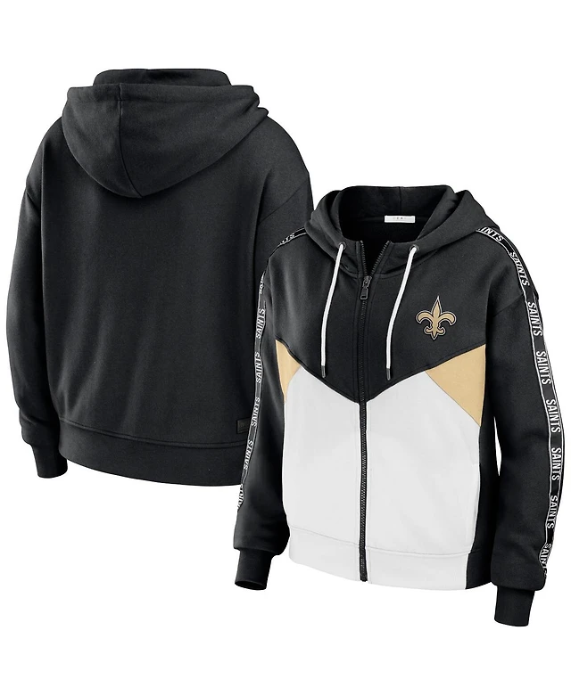 Women's Wear by Erin Andrews Black, White New Orleans Saints Color-Block Full-Zip Hoodie