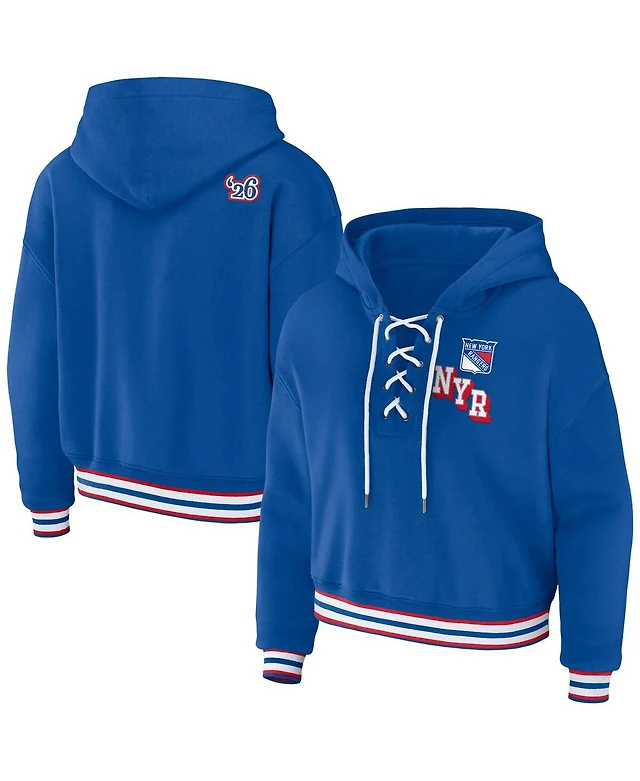 Women's Wear by Erin Andrews Blue New York Rangers Lace-Up Pullover Hoodie