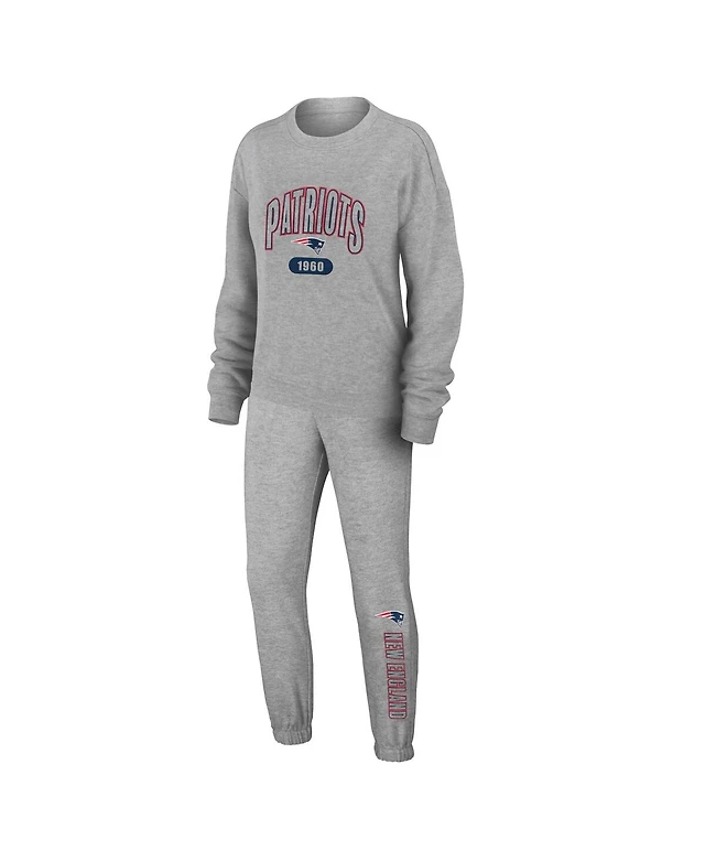 Women's Wear by Erin Andrews Heather Gray New England Patriots Knit Long Sleeve Tri-Blend T-shirt and Pants Sleep Set
