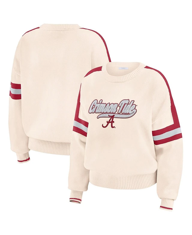 Wear by Erin Andrews Women's Cream Alabama Crimson Tide Chenille Woven Patch Stripe Pullover Sweater