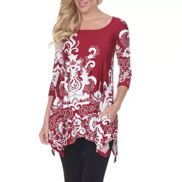 White Mark Plus Antonia Womens Scoop Neck 3/4 Sleeve Tunic Top