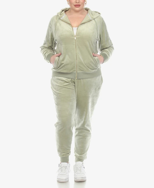 White Mark Plus Rhinestone Velour Tracksuit 2 Piece Set