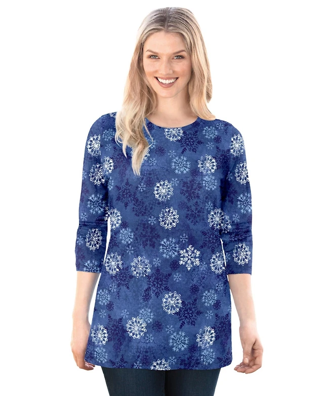 Woman Within Plus Rayon 7-Day Three-Quarter Sleeve Tab-Front Tunic