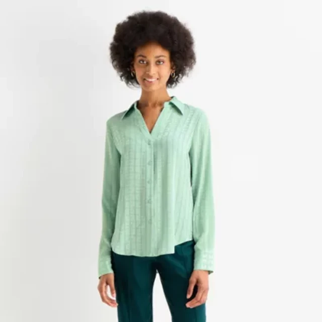 Worthington Womens Fitted Long Sleeve Regular Fit Button-Down Shirt