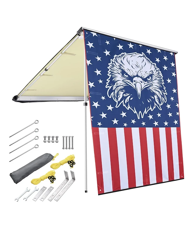 Yescom 4.4x6.6 Ft Vehicle Awning with Eagle Side Wall Roof Rack Pull-Out Sun Shade Camp