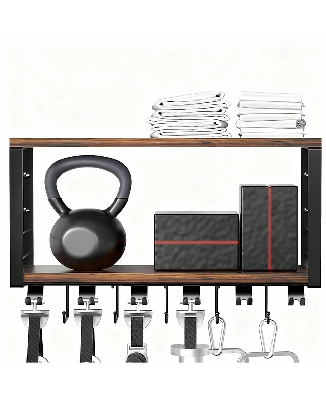 Yigii 2 Tier Wall Mount Home Gym Rack - Stylish, Heavy-Duty Storage for Fitness Accessories