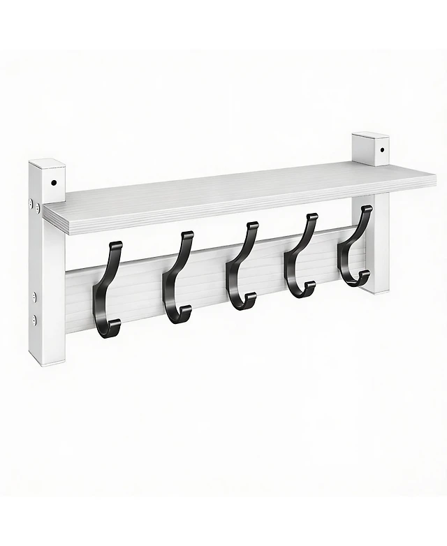 Yigii 5-Hook Wall Coat Rack with Shelf, 55lbs Capacity, Space Saving, Diy Install