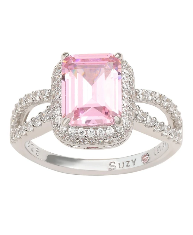 Suzy Levian New York Sterling Silver Cubic Zirconia Pink Engagement Ring