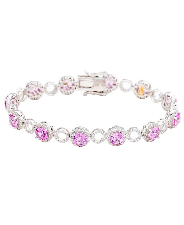 Suzy Levian Sterling Silver Sapphire & Created White Sapphire Interlocked Circles Station Bracelet