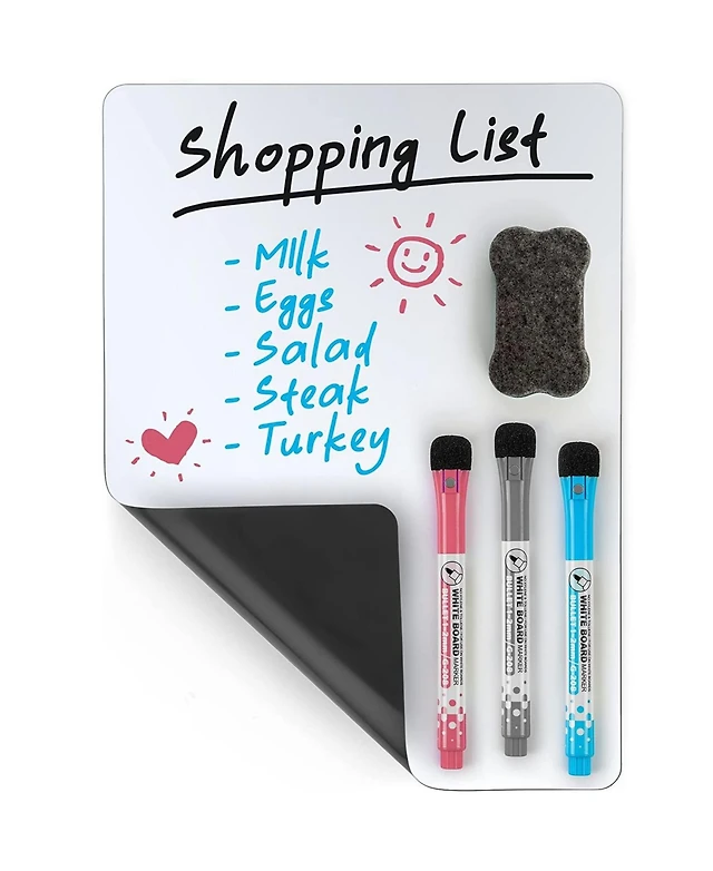 Magnetic Dry Erase Calendar Whiteboard Kit for Fridge Includes Notepad, 4 Colored Markers, & Eraser