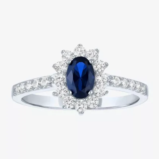 Womens Lab Created Gemstone Sterling Silver Halo Cocktail Ring