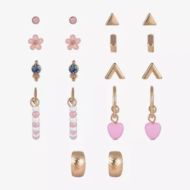 Womens Cubic Zirconia Sterling Silver Round 3 Pair Earring Set