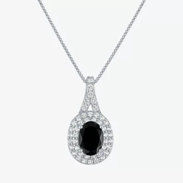 Womens Lab Created Gemstone Sterling Silver Halo Pendant Necklace