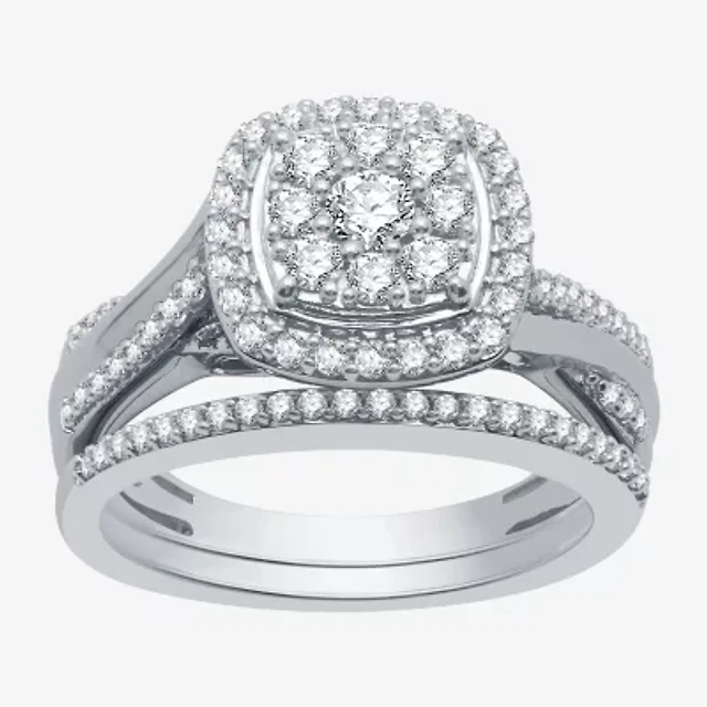 I Said Yes (H-I / I1) Womens 3/4 CT. T.W. Lab Grown White Diamond Sterling Silver Cushion Side Stone Halo Bridal Set