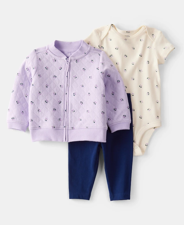 Carter's Baby Girls Floral Little Cardigan, Bodysuit & Pants, 3 Piece Set