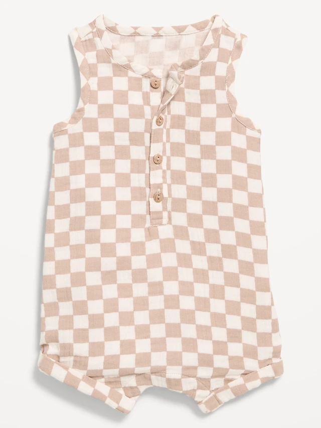 Long-Sleeve Waffle-Knit Henley One-Piece for Baby