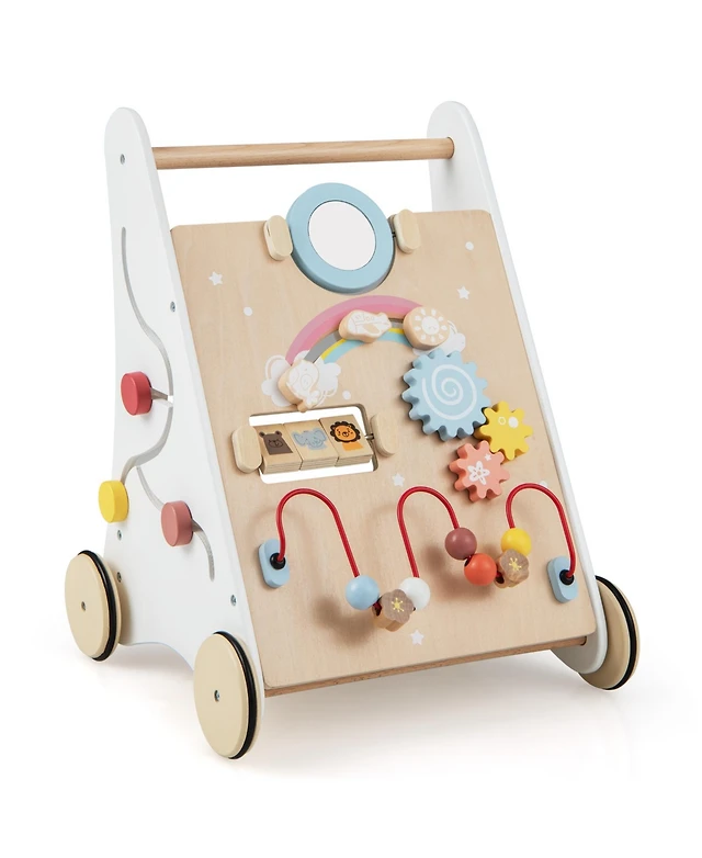 Gymax Toddler Wooden Walker Activity Center with Mirror Shape Sorter for 1+ Year Old