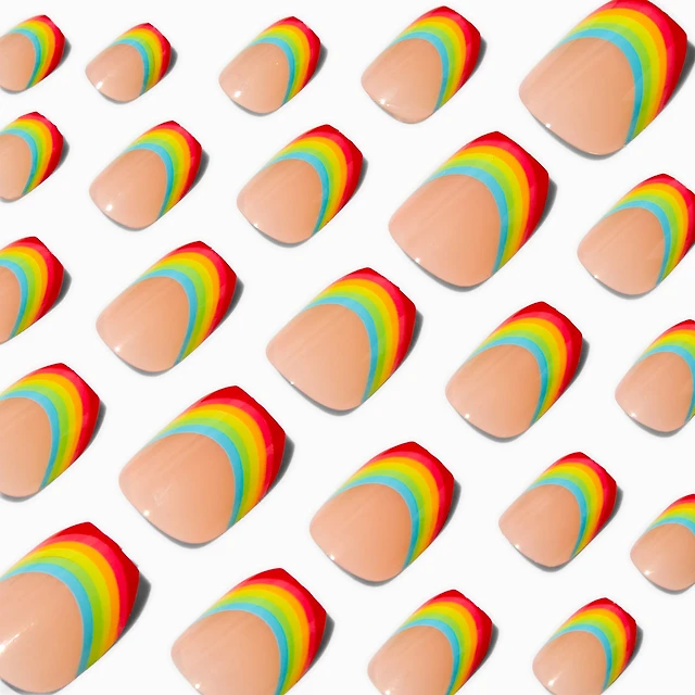 Rainbow French Tip Coffin Vegan Press On Faux Nail Set - 24 Pack