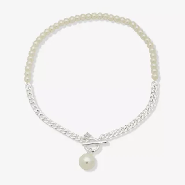 Mixit Womens White Simulated Pearl Stainless Steel Round 2-pc. Jewelry Set