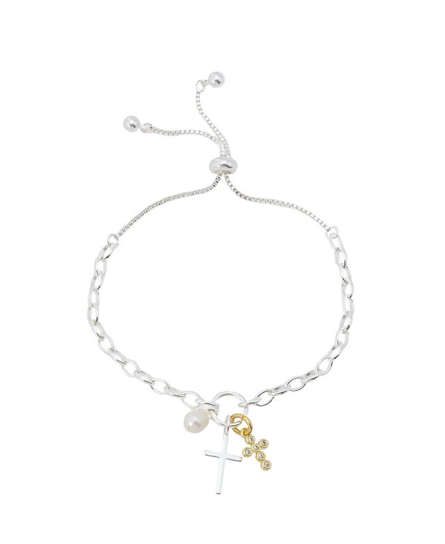 Unwritten Triple Strand Multi-Bead Link Evil-Eye Charm Gold-Tone Silver Plated