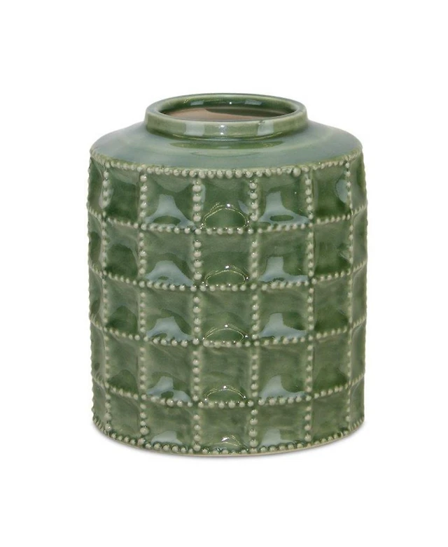 Slickblue 12.75" Elegance Ceramic Cylinder Vase with Gold Accents