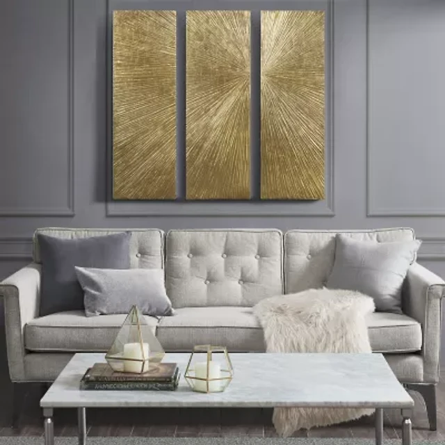 Madison Park Rosalie Textured Feather Metal Disc 3-pc. Wall Art Set