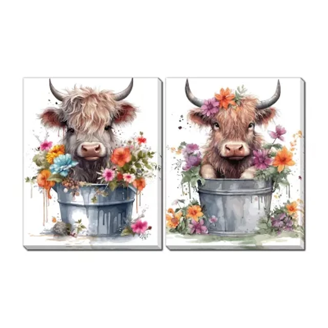 Streamline Art Baby Highland Cow 2-pc. Wall Art Set