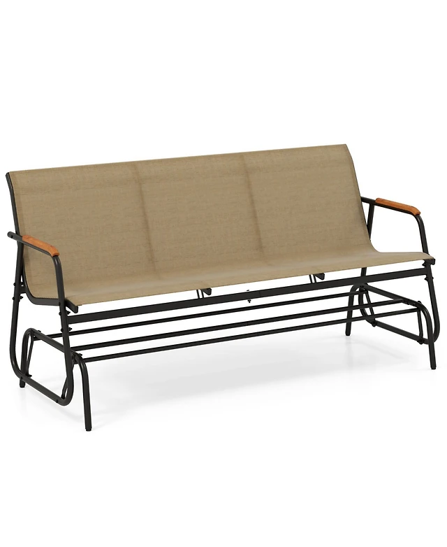 Costway Patio Glider Bench for 3 Swing Gliding Loveseat with Curved Teak Armrests for Porch