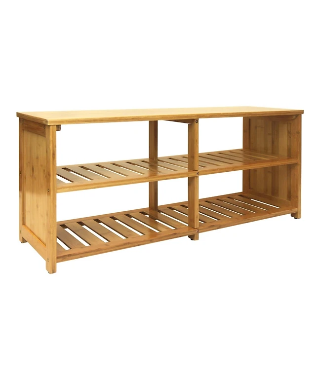 Slickblue Shoe Bench with Cushion Seat and 3 Compartments – Entryway Furniture
