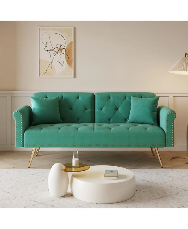 Jennifer Taylor Home Diane 84" Upholstered Bench Seat Tufted Tuxedo Sofa with Bolster Pillows