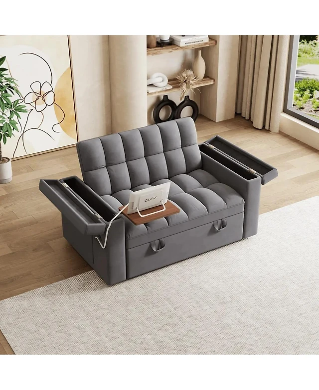 Streamdale 3-in-1 Velvet Sofa Bed with Adjustable Back (64.9", Dark Grey)