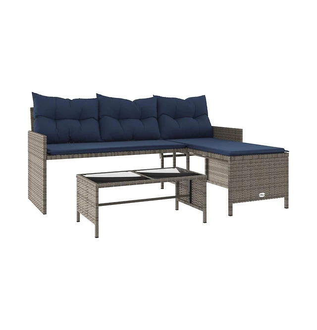 vidaXL Patio Sofa Grey and Navy Blue Pe rattan and powder-coated steel