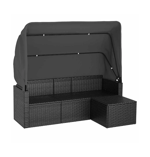 Garden Sofa Black Pe rattan 4-Seater Adjustable Feet