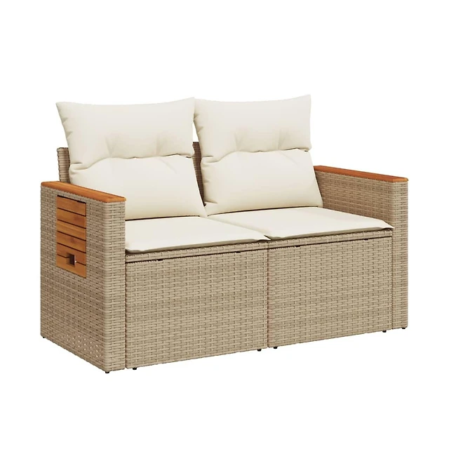 Garden Sofa Beige Poly Rattan 2-Seater Adjustable Legs