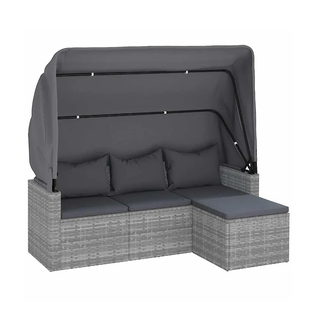 3-Seater Garden Sofa Grey Pe Rattan 3 Seater Foldable