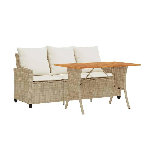 Garden Sofa Beige Pe rattan 3-Seater Removable Covers