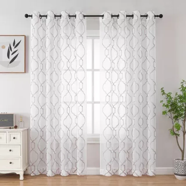 Fieldcrest Heritage Mirron Solid Grommet Top Sheer Single Curtain Panel