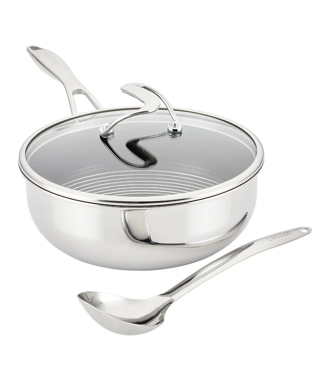 Circulon SteelShield C-Series Tri-Ply Clad Nonstick Chef Pan with Lid and Cooking Utensil Set, 3-Piece, Silver