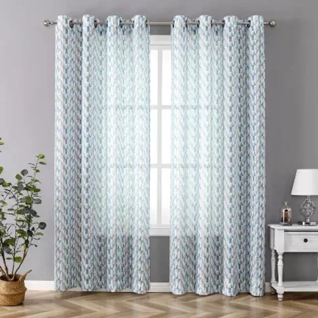 Fieldcrest Heritage Mirron Russell Print Grommet Top Sheer Single Curtain Panel