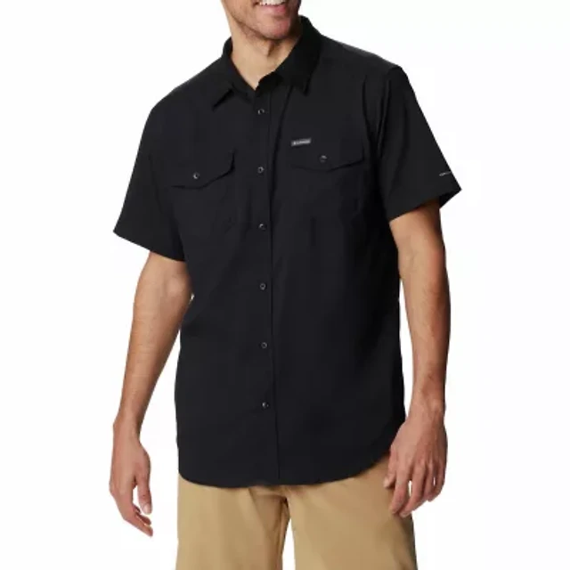 mutual weave Mens Short Sleeve Regular Fit Stretch Fabric Button-Down Shirt