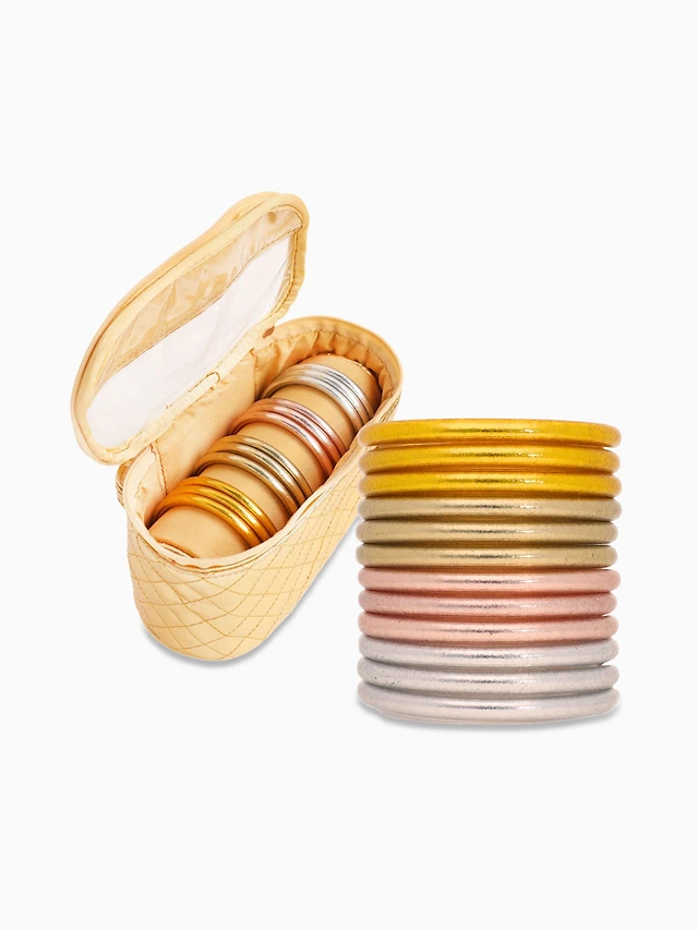 LA Hearts 8 Pack Gold Mega Metal Stacked Bangles
