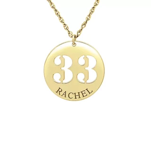 Personalized Womens 14K Gold Name and Number Round Pendant Necklace