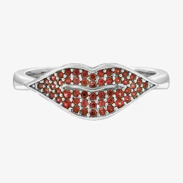 Diamonart Marilyn Monroe Womens Red Cubic Zirconia Platinum Over Silver Round Signet Ring