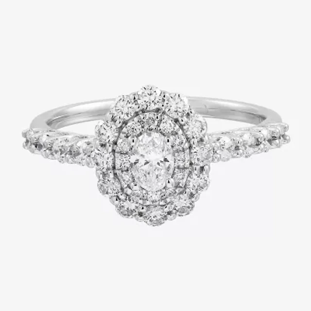 Limited Quantities! Womens 1 CT. T.W. Natural White Diamond 14K White Gold Halo Engagement Ring