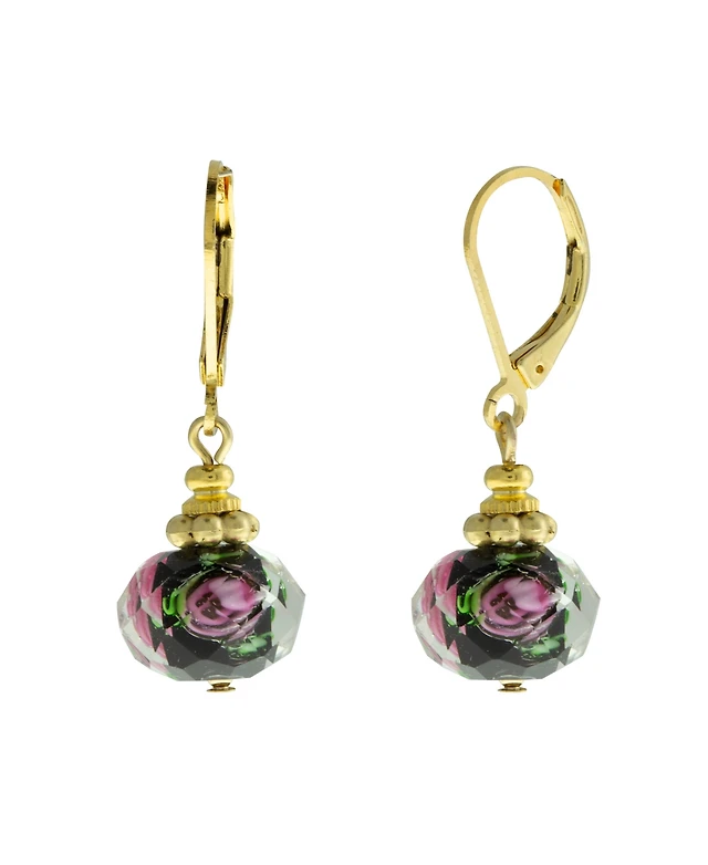 2028 Gold-Tone Imitation Pearl and Black Floral Drop Bead Earrings