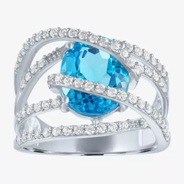 Womens Genuine Aquamarine & Lab-Created White Sapphire Sterling Silver Cocktail Ring